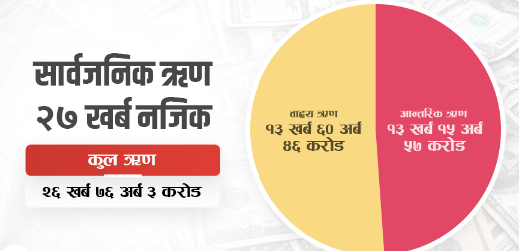 जनकपुरधाम : मुलुकको सार्वजनिक ऋण बढेर २७ खर्ब रुपैयाँ नजिक पुगेको छ । सार्वजनिक ऋण व्यवस्थापन कार्यालयका अनुसार..